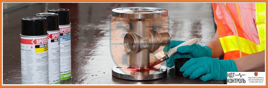 Во многих случаях по техническим требованиям необходимо выявить дефекты такой величины, которые визуально выявить невозможно. На помощь приходит метод цветной дефектоскопии. Сущность его заключается в изменении светоотдачи дефектов, заполненными цветоконтрастными индикаторными веществами. Они называются пенетрантами. В качестве таких красителей при цветной дефектоскопии используют вещества ярко-красного цвета, хорошо видимые при дневном или искусственном свете.
